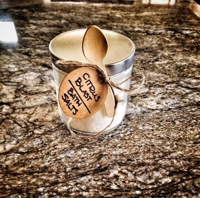 This blend of non-GMO, Kosher, vegan, cruelty-free, organic Epsom salts, baking soda and dead sea salts is paired with any of our signature essential oil blends. Only 4 ingredients go into this product. Simple, pure and effective. Every salt blend is hand poured and mixed.